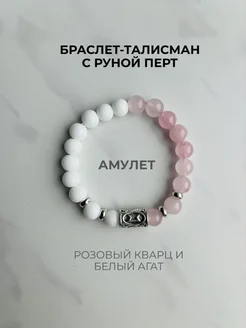 Браслет - амулет из натуральных камней розовый кварц и агат