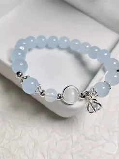 Браслет на руку, аквамарин натуральный с лунным камнем