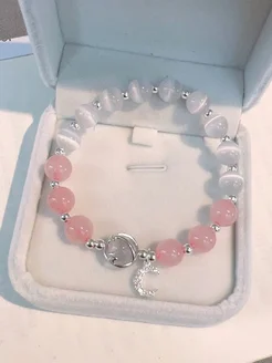Браслет на руку, лунный камень натуральный с розовым кварцем