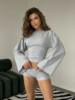 Лонгслив облегающий с широкими рукавами летучая мышь скимс