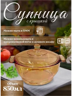 Супница с крышкой жаровня стекло