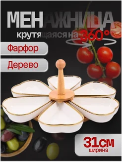 Менажница с подставкой 7пр фарфор дерево