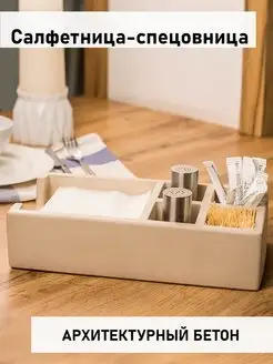 Салфетница кухонная интерьерная с отсеками под специи бетон