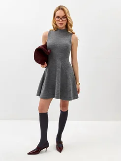 Платье шерстяное теплое женское без рукавов вязаное мини