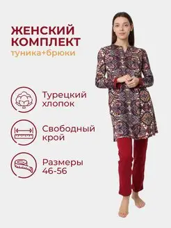 Костюм хлопковый туника с брюками домашний