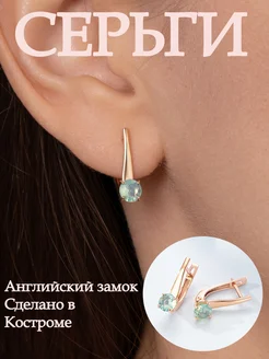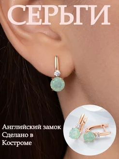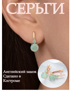 Серьги с зеленым камнем с золочением