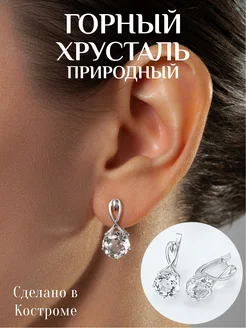 Серьги с крупным горным хрусталем натуральным бижутерия