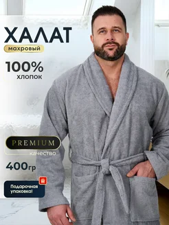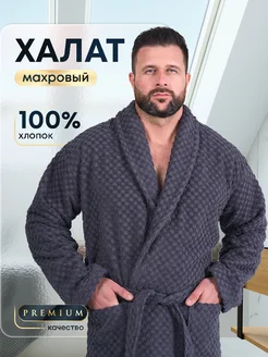 Халат мужской махровый банный домашний хлопок длинный мягкий