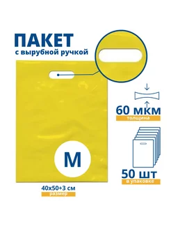 Пакет с вырубной ручкой, жёлтый 40*50+3см 50 шт, 60 мкм