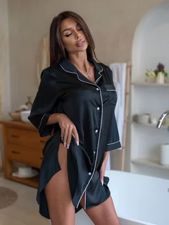 Халат рубашка шелковый черный