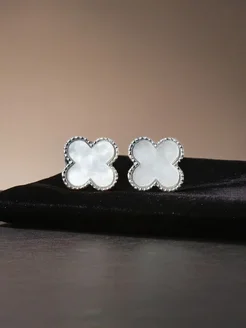 Серьги клевер Van cleef гвоздики 7 мм бижутерия