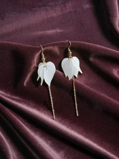 Серьги длинные с лепестками корейские