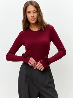 Лонгслив обтягивающий с вырезом через палец нарядный