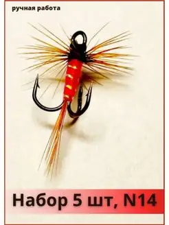 Мушка для рыбалки на тройнике - 5 шт, ручная работа