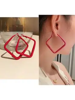 Серьги геометрические квадратные, кольца Конго, гвоздики