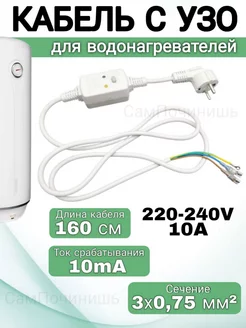 Кабель УЗО для водонагревателя 230В 10А 1.6 м