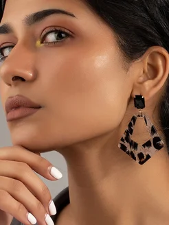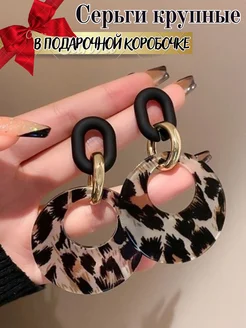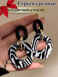 Серьги женские крупные кольца зебра бижутерия длинные