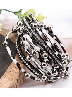 Широкий браслет со стразами кожаный на руку