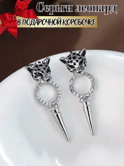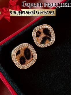 Серьги со стразами леопард