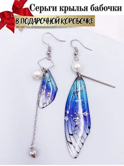 Серьги бабочки асимметричные длинные