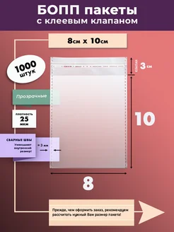 Упаковочные пакеты 8х10см с клеевым клапаном 1000шт