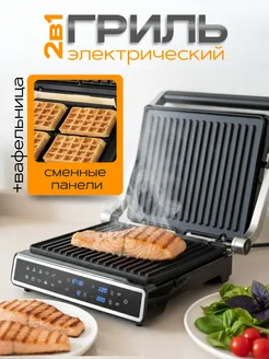 Электрогриль со съемными панелями и вафельницей
