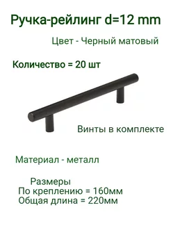 Ручка мебельная рейлинг d 12 mm 160 220, h32 матовый черный