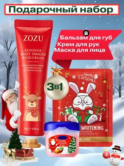 Подарочный новогодний набор крема, бальзам, маски тканевый