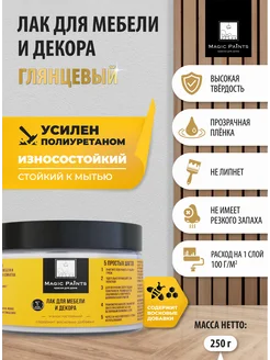 Лак акриловый глянцевый для мебели и дерева без запаха