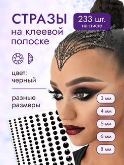 Стразы самоклеящиеся для волос с прочной фиксацией черные