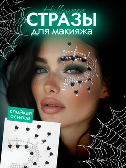Стразы самоклеящиеся детские паутина и сердечки черный