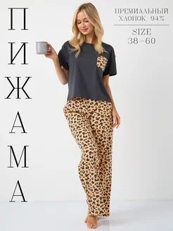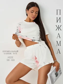 Пижама с шортами и футболкой оверсайз домашний костюм