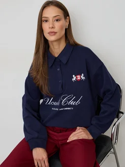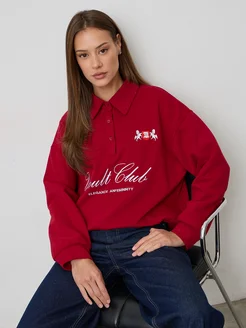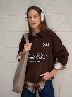 Свитшот оверсайз с принтом удлиненный толстовка поло