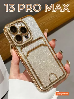 Чехол на iphone 13 pro max с картой со стразами с вкладкой