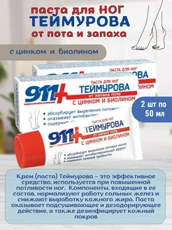 911 Паста Теймурова, средство для ног от пота и запаха 2 шт