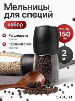 Набор мельниц для специй и перца 2 шт ручные, многоразовые