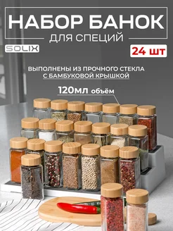 Баночки для специй и приправ с бамбуковыми крышками, 24шт