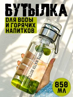 Бутылка стеклянная для воды и горячих напитков 850мл