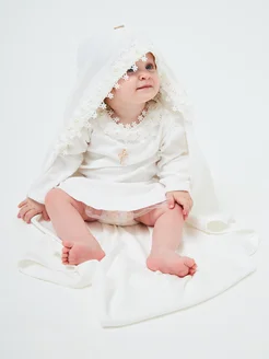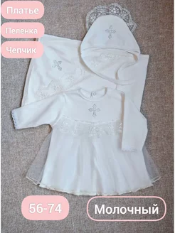 Крестильный набор для новорожденной 3 предмета с пеленкой