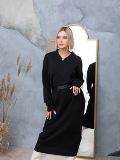 Платье теплое оверсайз свитер вязаное с вырезом