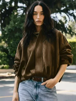 Куртка замшевая бомбер оверсайз