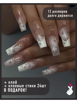 Накладные ногти с клеем и стиками длинные