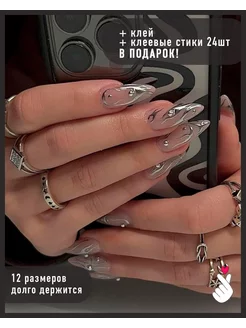 Накладные ногти с клеем и стиками дизайном к длинные стразы