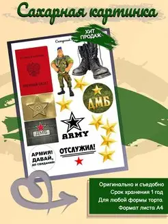 Сахарная картинка для торта "Дембель", А4