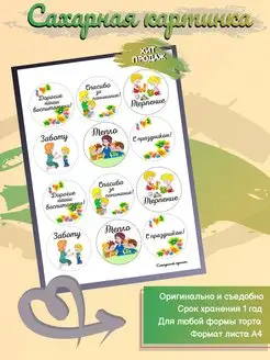 Сахарная картинка для торта "Воспитателю", А4