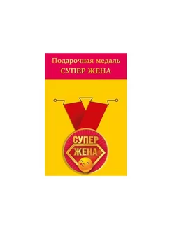 Медаль "Супер жена", металлическая, диаметр 56 мм, на ленте