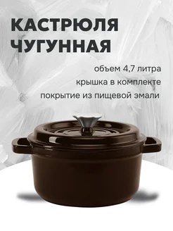 Чугунная кастрюля с крышкой 4,7л 26 см