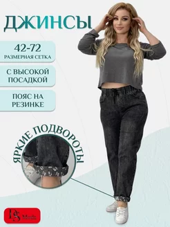 Джинсы большие размеры на резинке мом