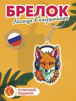 Брелок лиса в наушниках