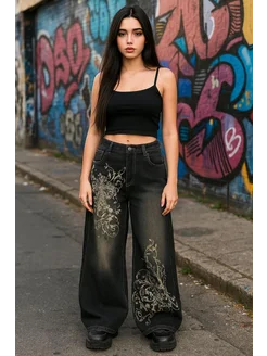 Джинсы широкие багги на низкой посадке